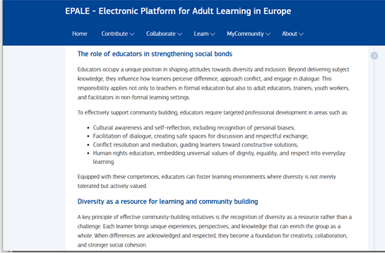 Building Community skills in times of diversity: The role of education in strengthening social cohesion